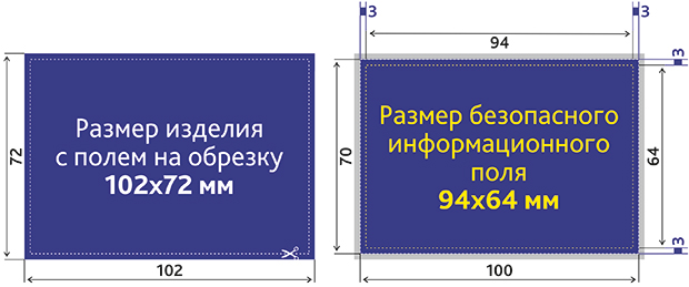 Размер безопасного информационного поля 94x64 мм (где будет текст, логотип);